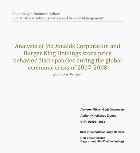Amazon Com Analysis Of Mcdonalds Corporation And Burger King Holdings Stock Price Behavior Discrepancies During The Global Economic Crisis Of 2007 2008 Ebook Godt Gregersen Mikkel Kindle Store